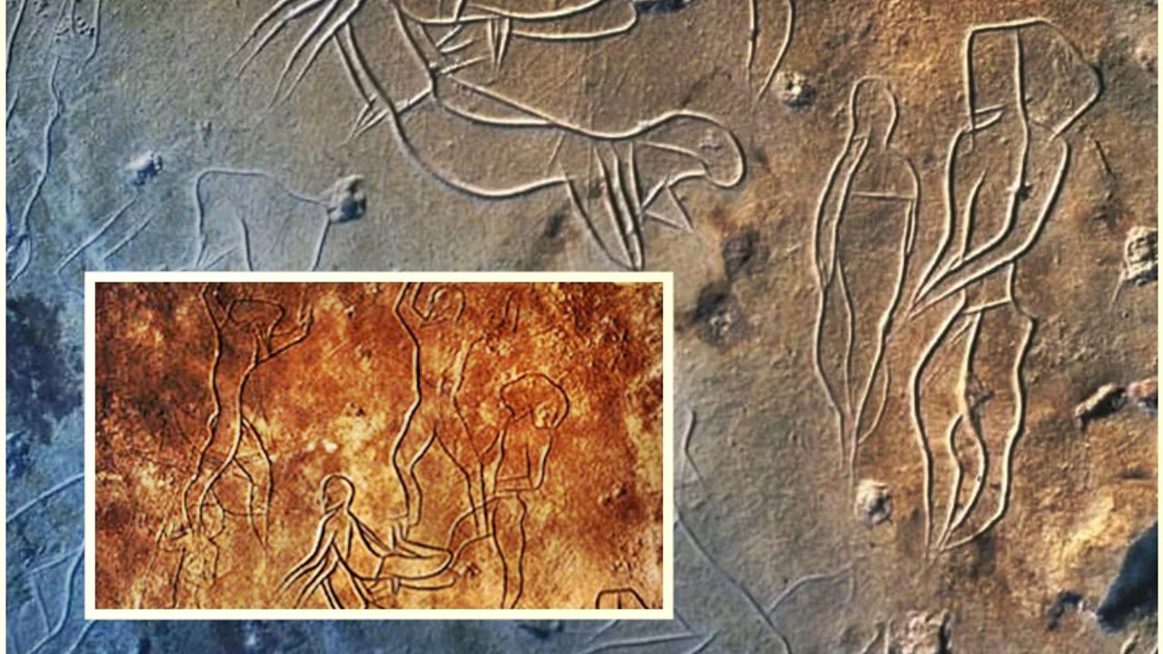 Grafitinin merkezinde, başları kapalı iki figür, geriye doğru neredeyse anatomik olarak imkânsız şekilde eğilmiş bir pozisyonda yer alıyor. Bu iki figür, dairesel bir düzende dizilmiş diğer insan figürleriyle çevrelenmiş durumda. Sahnenin düzeni ve figürlerin beden dili, basit bir av ya da günlük yaşam betimlemesinden çok daha fazlasını işaret ediyor. Arkeologlara göre bu, toplu bir ritüel ya da törensel bir etkinliğin tasviri olabilir.