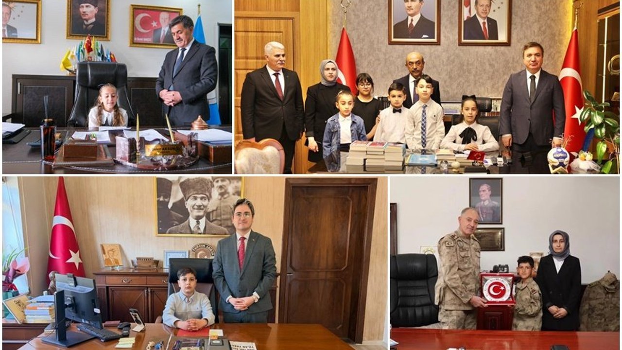 23 Nisan Ulusal Egemenlik ve Çocuk Bayramı dolayısıyla Erzincan’da anlamlı etkinlikler gerçekleştirildi. Geleceğin yöneticileri olarak görülen öğrenciler, kamu kurumlarını ziyaret ederek temsili olarak makam koltuklarına oturdu.