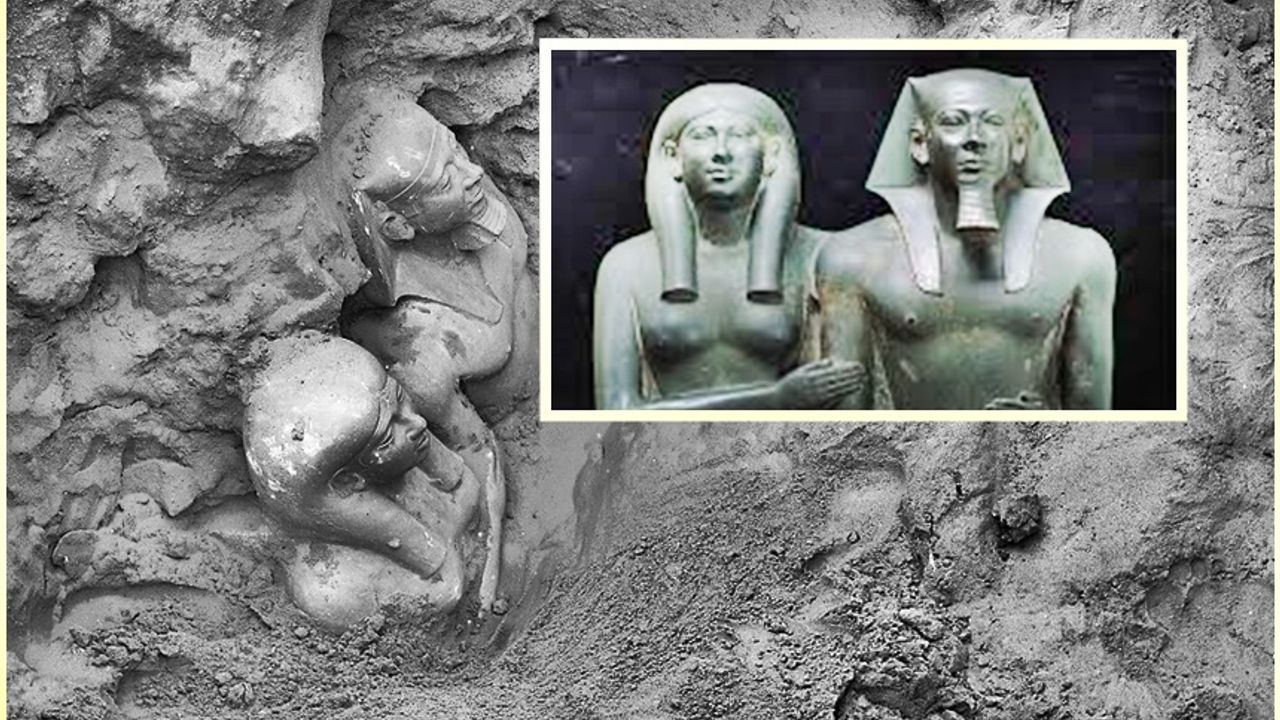 Kazı alanında bulunan ve yaklaşık 4.500 yıl öncesine, Eski Krallık’ın 4. Hanedanlığı’na tarihlenen granit heykel, Firavun Menkaure ile eşi Kraliçe Khamerernebty’yi yan yana tasvir ediyor. Sade ama güçlü duruşlarıyla dikkat çeken çiftin heykeli, hükümdarlıklarının simgesi olmanın ötesinde, zamanın ötesine uzanan bir sadakat ve ortak iktidar mesajı da taşıyor.