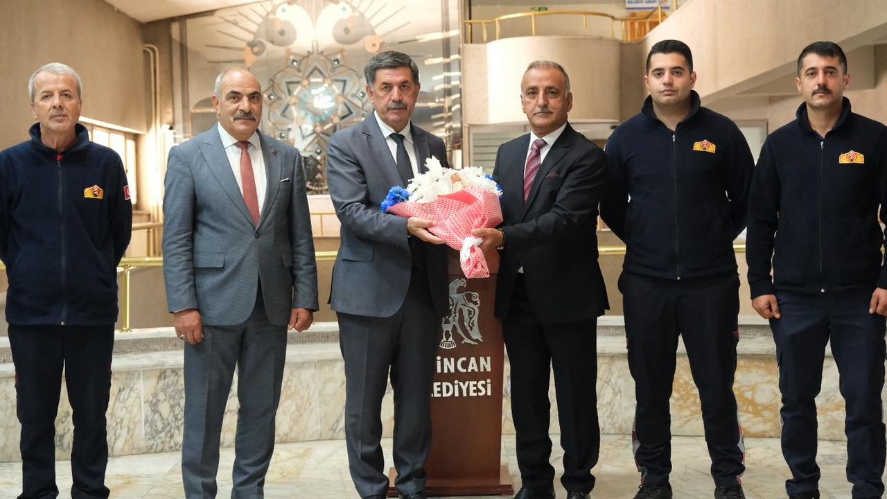 İtfaiye Haftası etkinlikleri çerçevesinde Erzincan Belediyesi İtfaiye Müdürü Sami Karakaş ve itfaiye erleri, Belediye Başkanı Bekir Aksun’u makamında ziyaret etti.