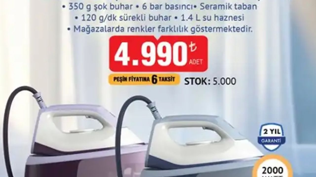 Türkiye’nin önde gelen zincir marketlerinden BİM, 5 Eylül 2025 Cuma günü satışa sunacağı aktüel ürünler arasında dikkat çeken bir ürünü daha raflarına getiriyor. Ev elektroniğine ilgi duyanların takip ettiği kampanyalar kapsamında bu kez buhar kazanlı ütü tüketicilerle buluşacak.