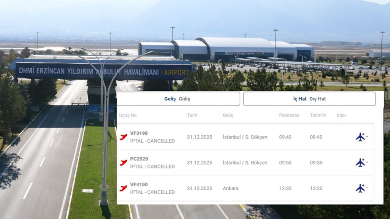 Erzincan Yıldırım Akbulut Havalimanı’nda etkili olan olumsuz hava koşulları nedeniyle bazı uçuşlar iptal edildi. Kent genelinde etkili olan kötü hava şartları, hava ulaşımını da olumsuz etkilerken, Erzincan’dan İstanbul ve Ankara’ya yapılması planlanan seferler iptal edildi.