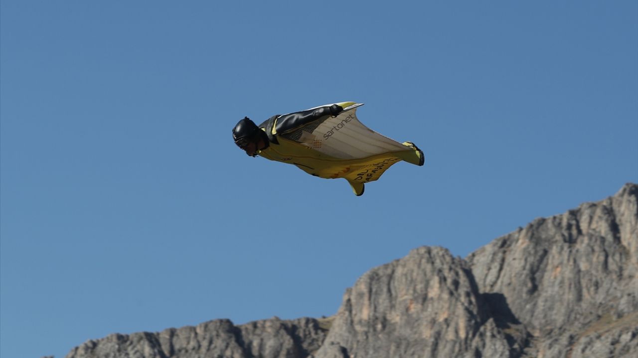 ERZİNCAN (AA) - Erzincan'ın Kemaliye ilçesinde, 46'ncısı düzenlenen "Uluslararası Kültür ve Doğa Sporları Şenlikleri"nin ikinci gününde gerçekleştirilen "wingsuit exit" (yarasa kanat) atlayışı, hayranlıkla izlendi.