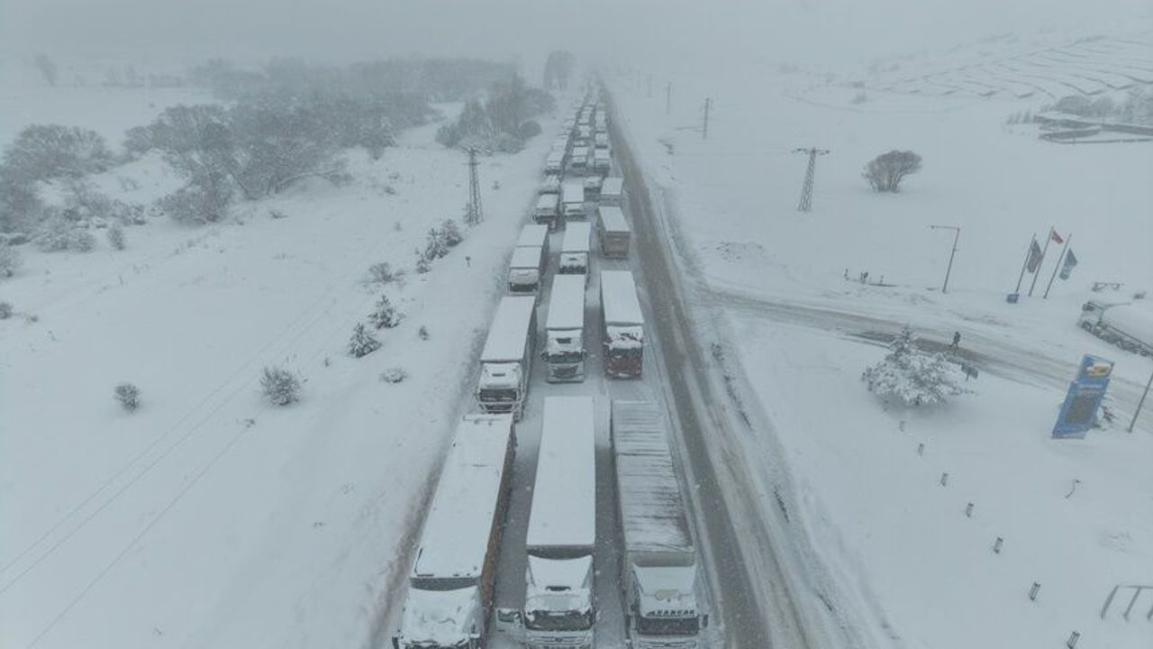 Refahiye ilçe çıkışında güvenlik önlemi alan polis ekipleri, tır sürücülerinin geçişine izin vermiyor. Uzun tır kuyruklarının oluştuğu bölgede sürücüler yolun tamamen kardan temizlenmesini bekliyor. Çok sayıda aracın kara saplandığı yolda ise ekipler karla mücadele çalışmalarını sürdürüyor.