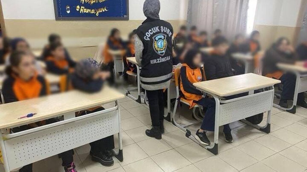Erzincan İl Emniyet Müdürlüğü bünyesinde faaliyet gösteren Çocuk Şube Müdürlüğü tarafından öğrencilerin bilinçlendirilmesine yönelik bilgilendirme etkinliği düzenlendi. Eğitim kapsamında öğrencilere kişisel güvenlikten internet kullanımına kadar birçok konuda önemli bilgiler aktarıldı.