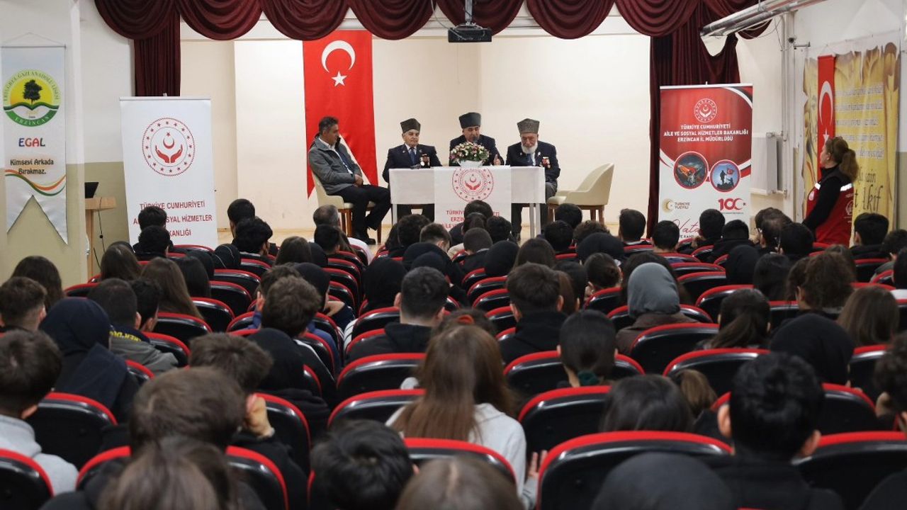 Erzincan Aile ve Sosyal Hizmetler İl Müdürlüğü tarafından düzenlenen “Vatan ve Kahramanlık Buluşmaları” bu yıl da duygu dolu anlara sahne oldu. Aziz şehitlerimizin kıymetli yakınları ve kahraman gaziler, Erzincan Ertuğrulgazi Anadolu Lisesi öğrencileriyle bir araya gelerek hem tarihe not düşen anılarını hem de vatan sevgisiyle yoğrulmuş kahramanlık hikâyelerini gençlerle paylaştı.