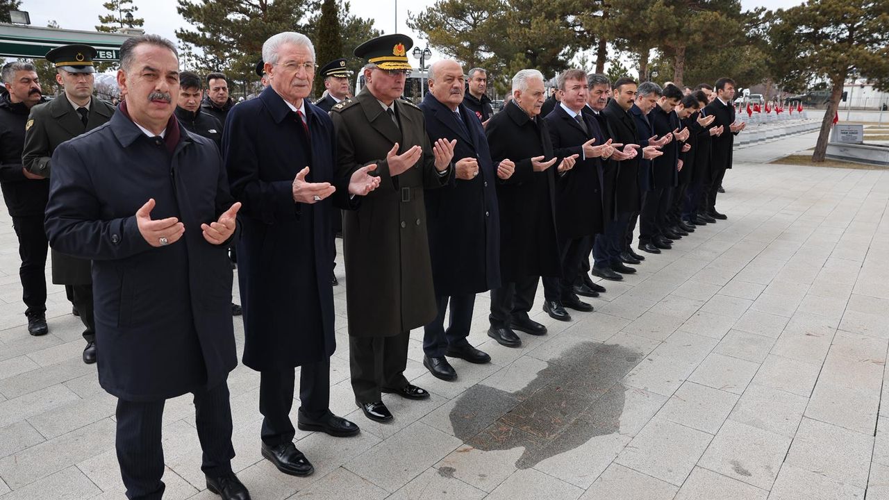 Mevlit programının ardından heyet, Erzincan Garnizon Şehitliği’ni ziyaret etti. Protokol üyeleri, şehit mezarlarına karanfiller bırakarak dua etti.