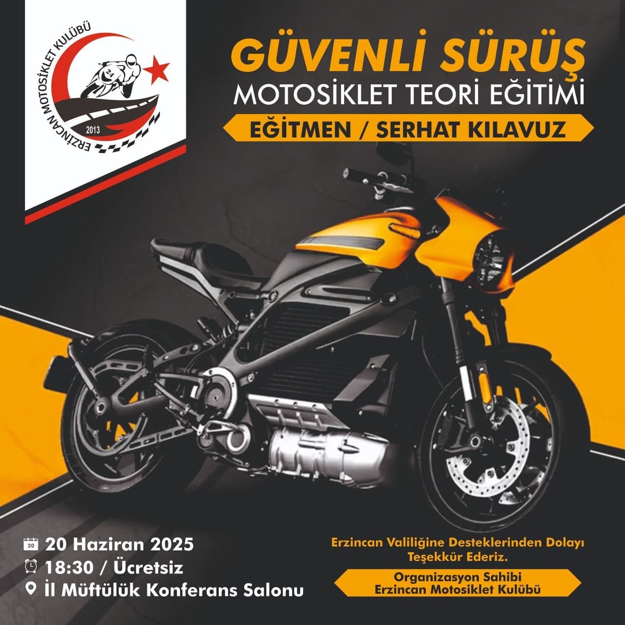 Eğitim, alanında deneyimli ve uzman bir isim olan Eğitmen Serhat Kılavuz tarafından verilecek. Kılavuz, katılımcılara motosiklet sürüş tekniklerinin yanı sıra, trafik kuralları, risk analizi, acil durum senaryoları ve motosiklet bakımı gibi konularda kapsamlı teorik bilgiler sunacak. Bu eğitim, hem tecrübeli sürücülerin bilgilerini tazelemeleri hem de motosiklet kullanmaya yeni başlayanların güvenli sürüş alışkanlıkları kazanmaları için kaçırılmaması gereken bir fırsat. Eğitimde verilecek bilgiler, Erzincan yollarında güvenliği artıracak ve olası kazaların önüne geçilmesinde kritik rol oynayacak.