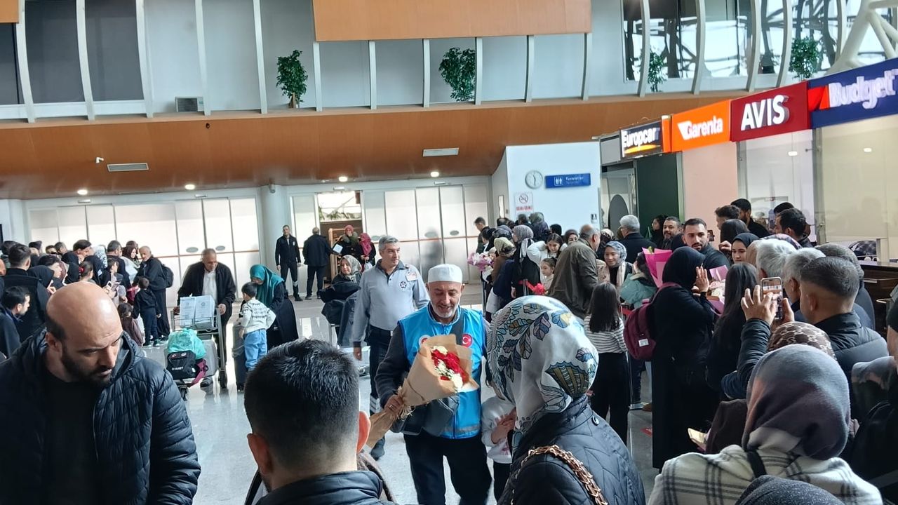 Kutsal topraklardan dönen umreciler, Erzincan Havalimanı ve karşılama alanlarında aileleri ve yakınları tarafından karşılandı.