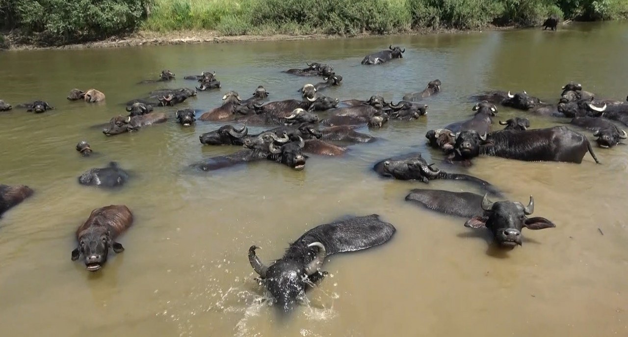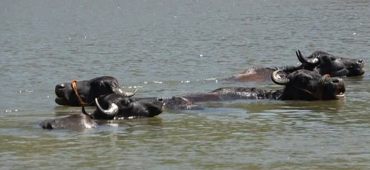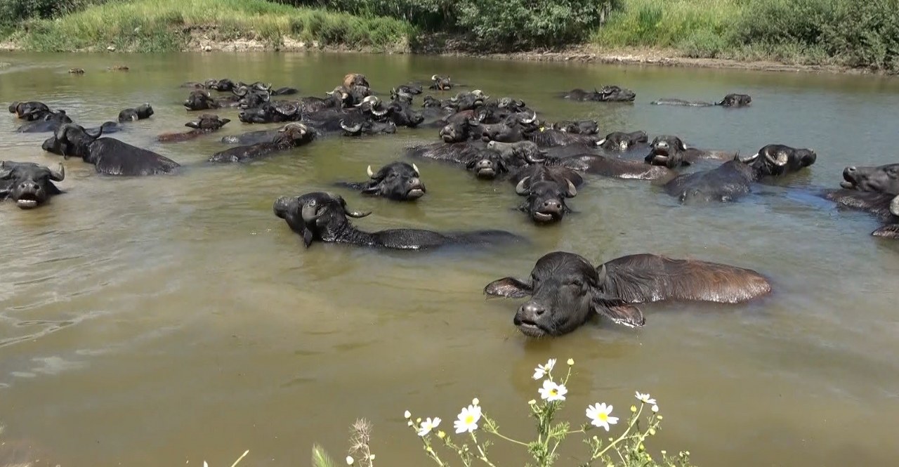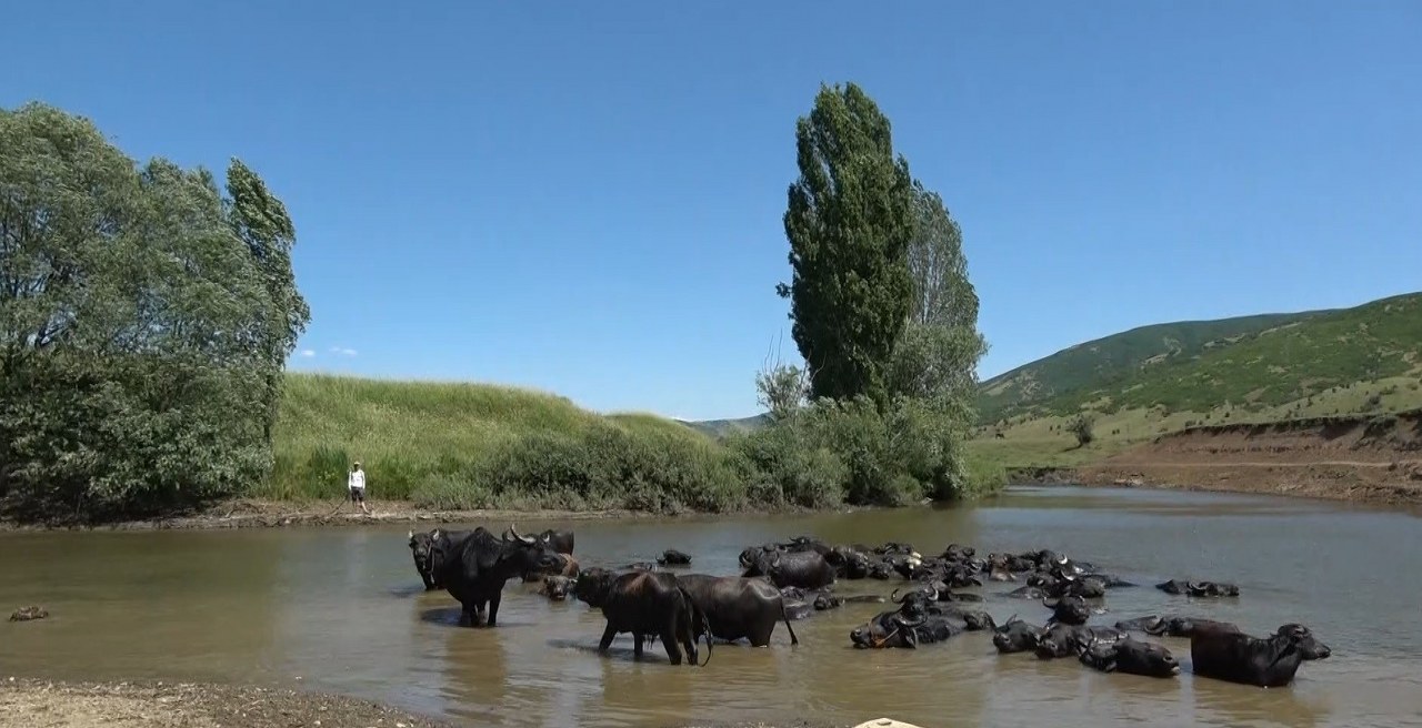 Muş'ta sıcaktan bunalan mandalar Afrika'yı aratmayan görüntüler meydana getirdi