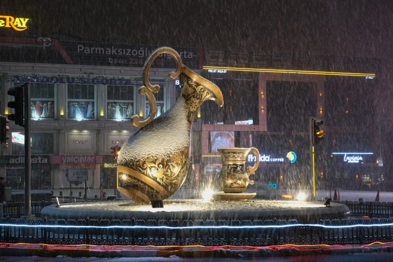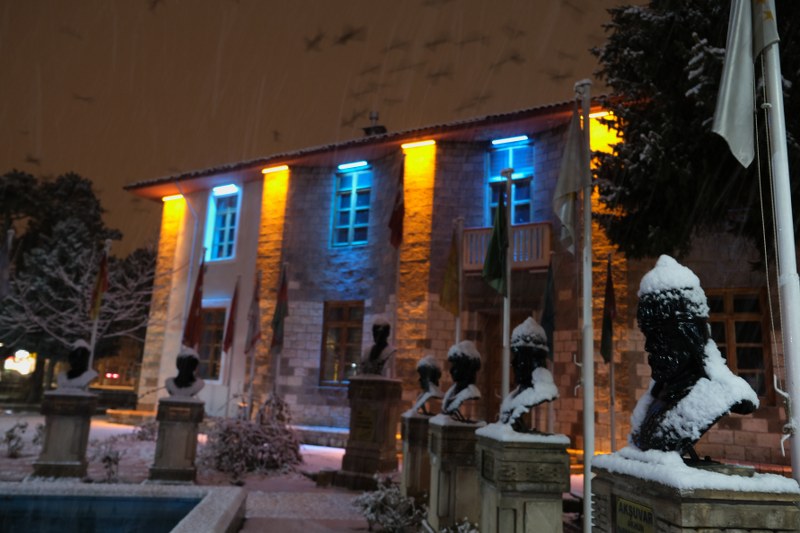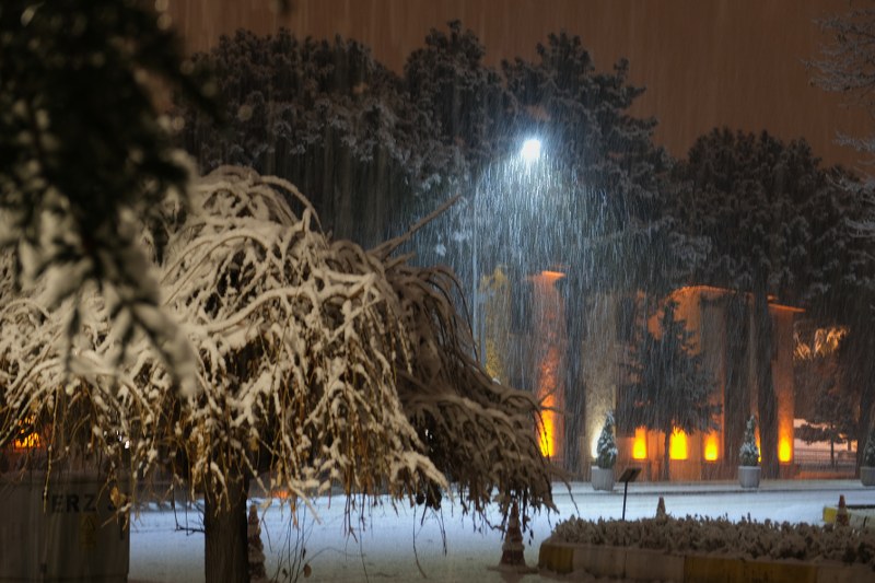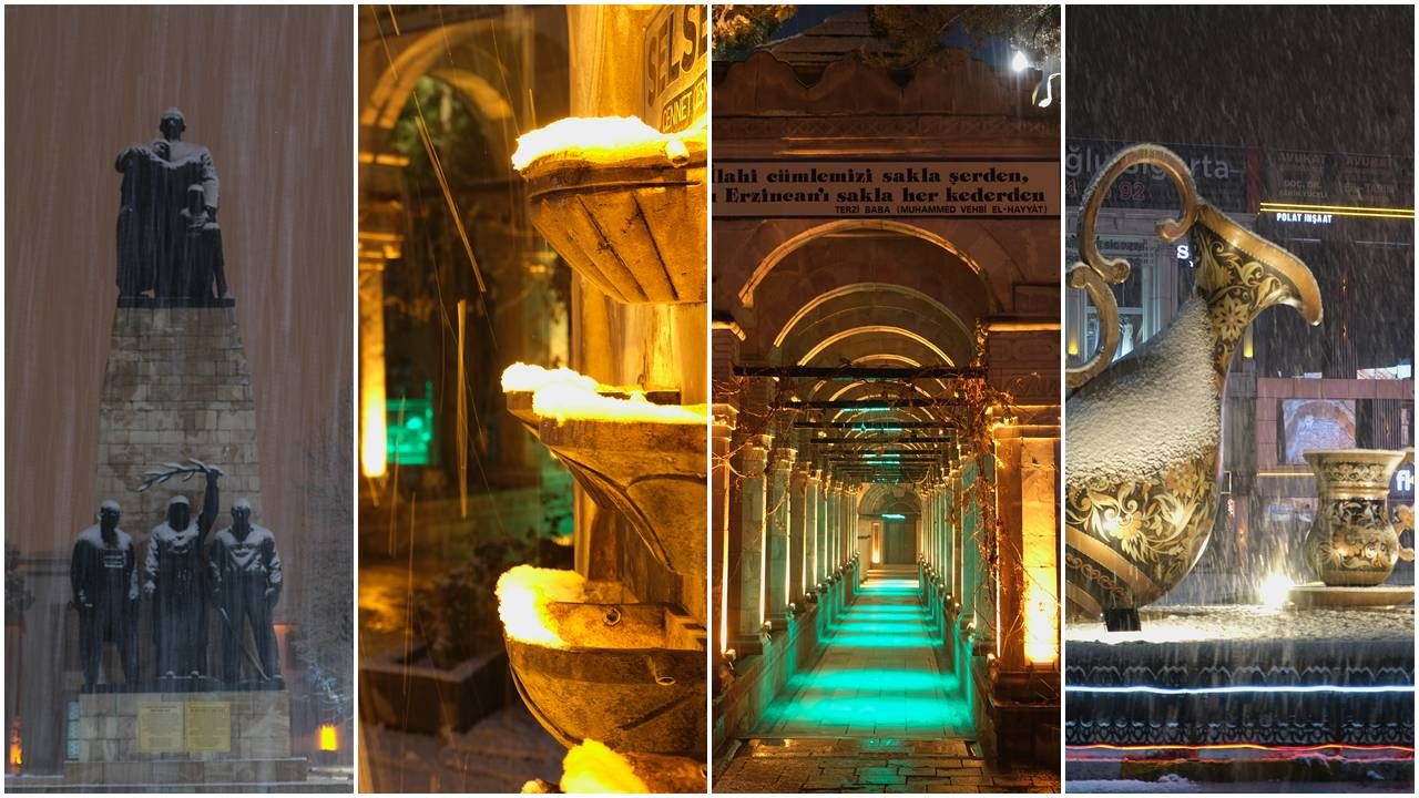 Erzincan merkezde yılın ilk karı gece saatlerinde yağdı, beyaza bürünen kentte kartpostallık görüntüler oluştu.