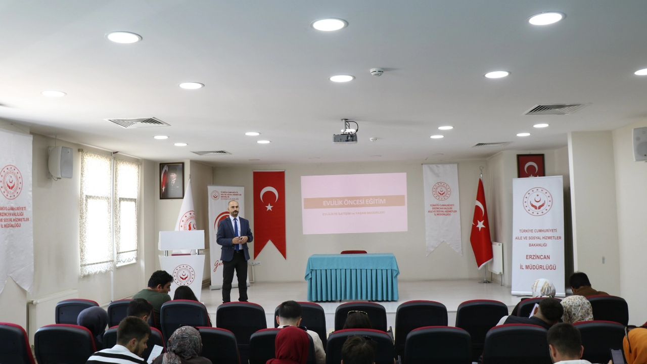 "Evlenecek Gençlerin Desteklenmesi Projesi" kapsamında, Erzincan Aile ve Sosyal Hizmetler İl Müdürlüğü tarafından evlilik öncesi eğitim seminerleri sürüyor.