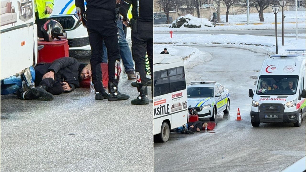 Motosikletiyle birlikte otobüsün altına girmekten son anda kurtulan kurye çarpmanın etkisiyle yere savrularak yaralandı. Kazayı görenlerin ihbarı üzerine olay yerine trafik ekipleri ve sağlık ekipleri sevk edildi.