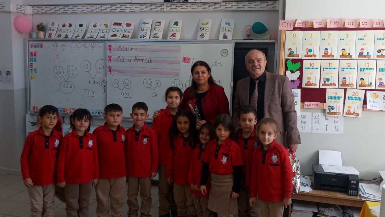 Muhtar Tekcan, okulda görev yapan öğretmenlere çiçek takdim ederek onların fedakârlıklarına ve eğitim camiasına sundukları katkılara teşekkür etti. Tekcan, öğretmenlerle birebir sohbet ederek sorunlarını ve taleplerini dinledi.