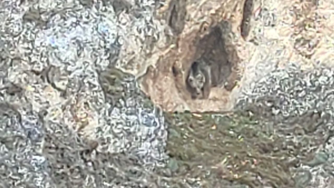 Erzincan'ın Refahiye ilçesinde kış uykusundan uyanan ayı ile 2 yavrusu görüntülendi. Köroğlu Deresi mevkiinde dinlenmek amacıyla aracını sağa çeken iki arkadaş, yolun karşısında bulunan dağdaki mağaradan çıkan ayıyı görünce kameralarını ellerine alarak kayda başladı. "Ayııı" diye seslendikleri anne ayı, yavrularıyla birbirine sarılıp yatarken çekimi yapan kişilerin birbiri ile muhabbeti de ilgi çekti.