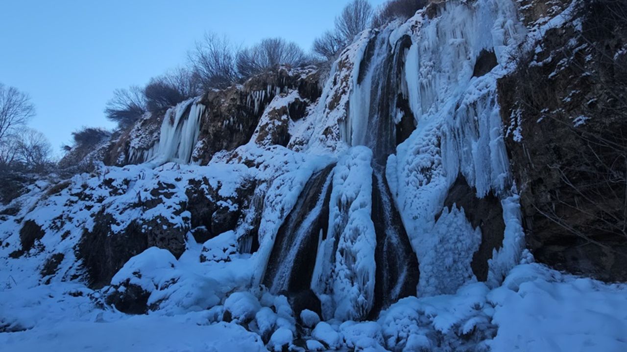 Erzincan’da etkili olan kar yağışı ve dondurucu soğuklar, kentin önemli doğal güzelliklerinden Girlevik Şelalesi’ni adeta buzdan bir tabloya dönüştürdü. Hava sıcaklıklarının gece saatlerinde eksi 15 dereceye kadar düşmesiyle şelalenin büyük bölümü dondu.