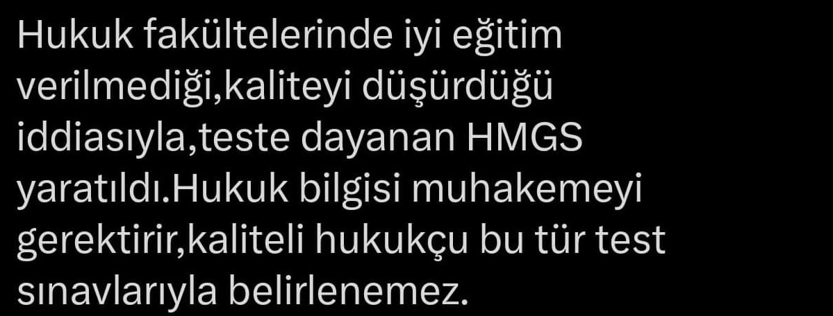 HMGS sınavına katılan binlerce aday, sınavın ardından X platformunda tepkilerini dile getirdi. Birçok aday, sınav sorularının ezbere dayalı; muhakemeyi veya niteliği ölçmeye değil de sırf elemeye yönelik olduğunu ve aşırı detay içerdiğini, mantık sınırlarını zorladığını ve zaman yönetimini imkansız hale getirdiğini belirtti. Dikkat çeken diğer yorumlarsa şöyle: