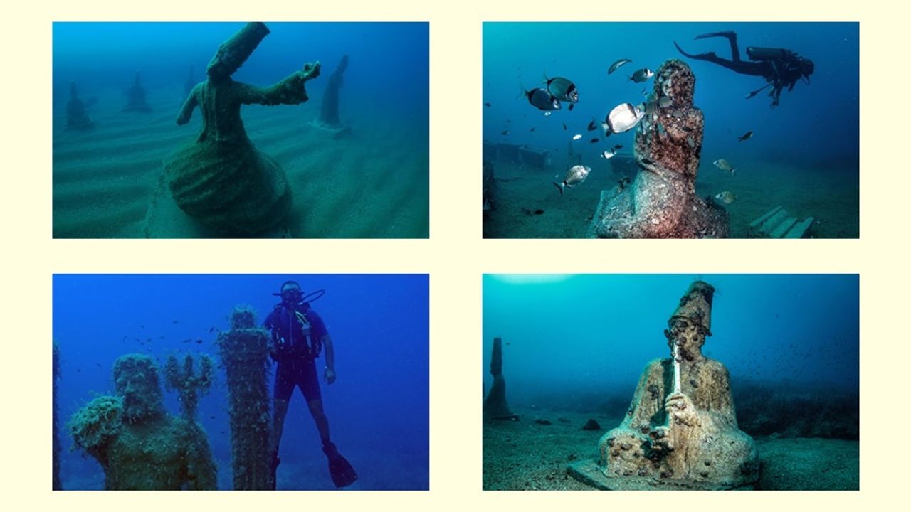 Müzede, tamamı özgün tasarımlarla oluşturulmuş 117 heykel sergileniyor. Heykeller, deniz ekosistemine zarar vermeyecek özel malzemelerle yapılmış ve çevreye duyarlı bir biçimde yerleştirilmiş. Ziyaretçiler, 13, 18 ve 24 metre derinliklerde yer alan tematik bölümlerde Anadolu'nun köklü tarihine tanıklık ediyor.
