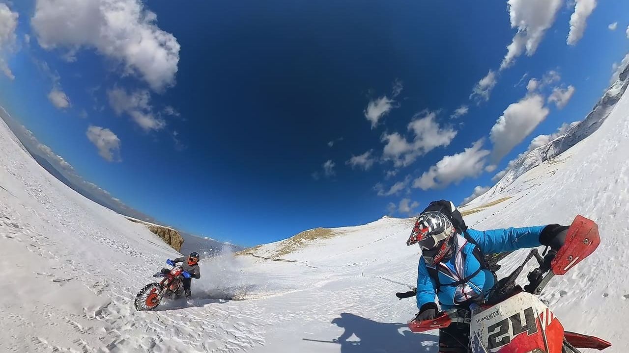 Ergan Zirvesinde Kros Motosikletle Sezonun İlk Kayağı!