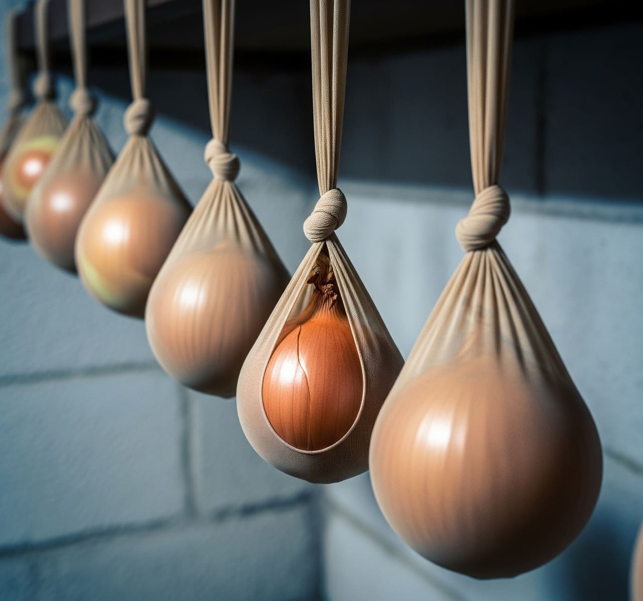 - Soğanları Külotlu Çorapta Saklayın: Soğanları külotlu çoraplarda boğumlayarak saklamak, nemlenmelerini önler ve 8 aya kadar taze kalmalarını sağlar.