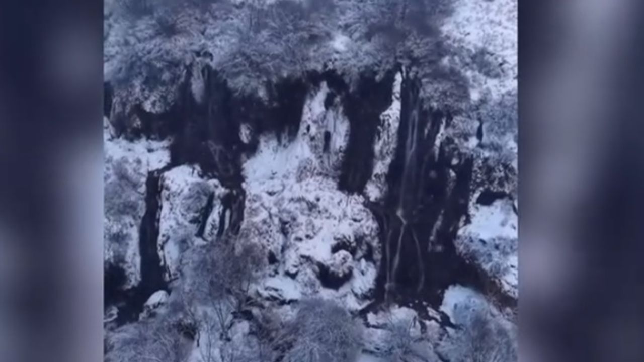 Erzincan Valiliği, kış mevsiminin etkileyici manzarasıyla dikkat çeken Girlevik Şelalesi’ni sosyal medya hesaplarından anlamlı bir video ile paylaştı. Valilik paylaşımında, şelalenin kış aylarında adeta bir sanat eserine dönüştüğünü vurguladı.